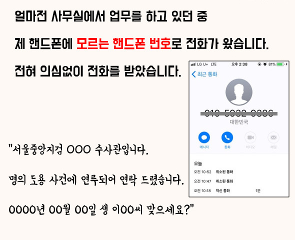 예전에 이런 상황에서 섣부르게 대처하다가 큰코다칠 뻔한 적이 있습니다. 업무 중 서울지방검찰청이라고 하면서 전화가 온 적이 있습니다. 수사관이며 제 계좌가 범죄에 이용되었다는 뭐 다들 아시는 뻔한 내용이었죠. 업무 때문에 스트레스를 받고 있던 차에 때마침 그런 전화가 왔고 통화를 하다가 피싱이라는 사실을 깨달았습니다. 그러자마자 장난을 치기 시작했죠. 그랬는데 그 사람이 제게 쌍욕을 하면서 끊어버리더라고요.