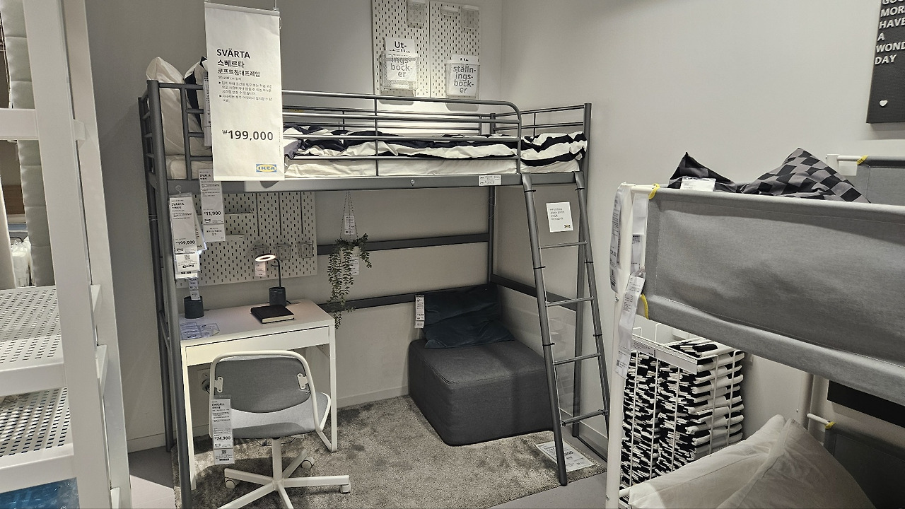 자녀방도 콘셉트를 달리해서 꾸며놓은 쇼룸들이 있었습니다. 이렇게 꾸며진 장소들을 보니까 미적 감각이나 디자인에 대한 센스가 부족한 저 같은 사람들에게는 확실히 영감을 줄 수 있겠다는 생각이 들더군요. 다만 쇼룸은 그야말로 '멋지다'라는 느낌을 주는 쇼룸의 역할 이상을 하기에는 조금 아쉬운 느낌이었습니다. 각자 사는 집이나 방의 구조나 예산이 다르니까요.