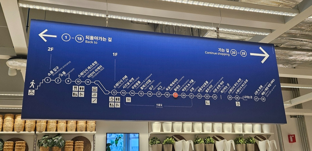 저는 힘들었지만 이케아 매장이 가진 특유의 ‘길을 찾아 헤매는 재미’를 선호하는 분들께는 좋았을 듯합니다. 멈추지 않고 구경도 별로 하지 않은 채로 계속 걸었음에도 10분 넘게 걸릴 정도로 정말 긴 구간이었습니다. 오죽하면 매장의 전개도를 한 번 보고싶다는 생각이 들 정도였으니까요.