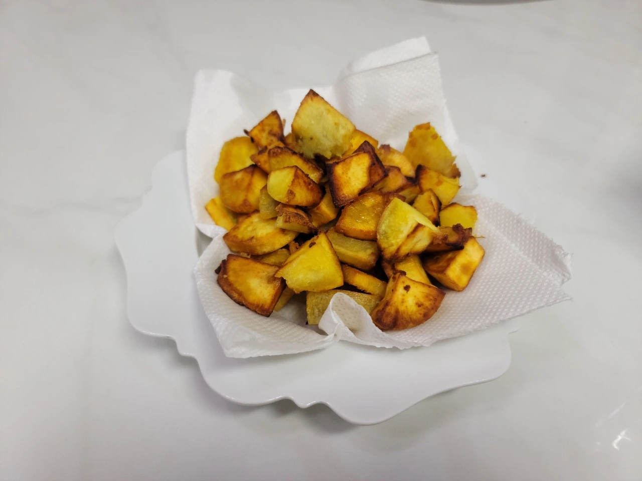 그렇게 제 요리 DNA가 잡채 하나만 남겨놓고 개미 똥꾸멍만치 줄어들었을 때 새로운 기회가 찾아왔습니다. 바로 고구마 맛탕이었죠. 회사에서 먹은 맛탕은 딱딱한 식감이 아닌 부드럽게 녹는 느낌이었고 제 입맛에 딱 맞았습니다. 너무 맛있게 먹었던지라 가족들에게도 먹여보고 싶다는 생각이 든 것입니다.