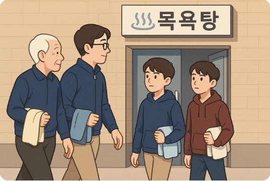 식사를 마친 뒤에는 저와 둥이들과 아버지를 모시고, 아내는 엄마와 목욕탕을 다녀왔습니다. 아이들이 더 크면 이런 기회가 더 없지 않겠냐던 아내의 제안이었죠. 할 일이 많다고 구시렁거리던 아이들을 설득해서 잘 다녀왔습니다. 저도 오랜만에 아버지와 목욕탕을 다녀오니 세월이 많이 흘렀음을 깨닫기도 했고 만감이 교차하는 느낌이었습니다.