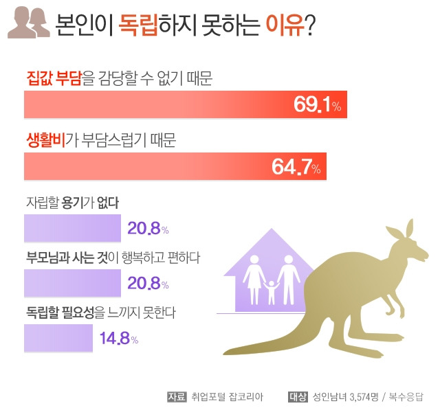 캥거루족이라는 단어에는 자녀 세대들을 향한 질책이 담겨 있지만, 사실은 그 주머니를 열어준 사람은 따로 있기에 결코 부모들은 그 책임에서 자유로울 수 없습니다. 자녀에게 스스로 꾸려나가는 삶을 준비하게 하는 일은 단순히 양육하고 보호하는 일과는 전혀 다른 차원의 문제이니까요.
