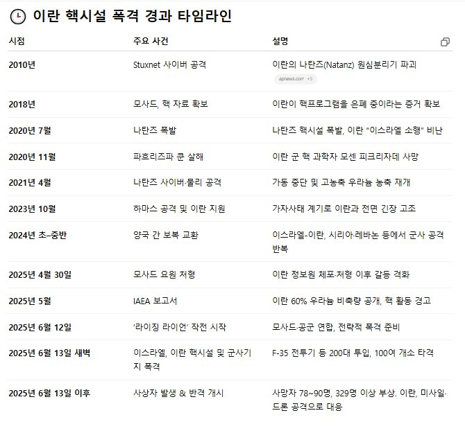 하지만 최근 이번 이스라엘의 이란 핵시설 폭격 소식을 접하고 저를 비롯한 전 세계는 큰 충격에 빠졌습니다. 그 배경에는 이란 핵 능력에 대한 공포, 그 무기가 자신들에게 향할 수도 있다는 두려움이 섞여 있습니다. 이스라엘은 이 작전에 대한 명분을 "핵무기가 현실화되기 전에 생존권을 지키기 위한 유일한 선택"이라고 밝혔으니까요.