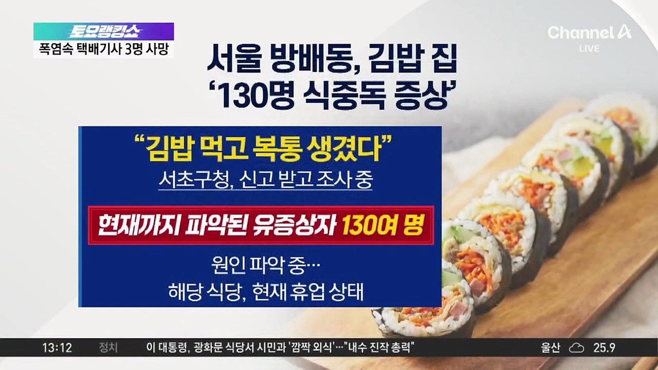 최근 화들짝 놀랄 만한 뉴스를 접했습니다. 서초구에 있는 식당에서 김밥을 먹은 손님들 130명이 식중독에 걸렸다는 소식이었죠. 일부 피해자들은 췌장 수치까지 올라가는 심각한 지경에까지 이른 경우도 있었다고 합니다. 이 수치가 올라가면 췌장 손상을 넘어 급성 췌장염, 만성 췌장염까지 이어지니 결코 가벼운 소식이 아니었죠. 그 식당은 음식에 문제가 없었다며 억울하다고 항변했으나 이미 휴업에 들어가고 말았습니다.