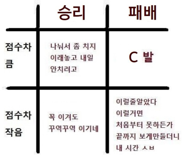이기면 이기는 대로 중계를 보느라 시간을 쓰고 있다는 생각이 드니 좋지 않고 지면 지고 있어서 열이 받습니다. 차라리 예전에 아랫목에서 놀던 시절에는 신경도 안 썼는데 말이죠. 갑자기 너무 잘해서 순위가 1위까지 가는 바람에 없던 애정이 생겨서 되려 힘이 들게 되는 모순적인 상황입니다.