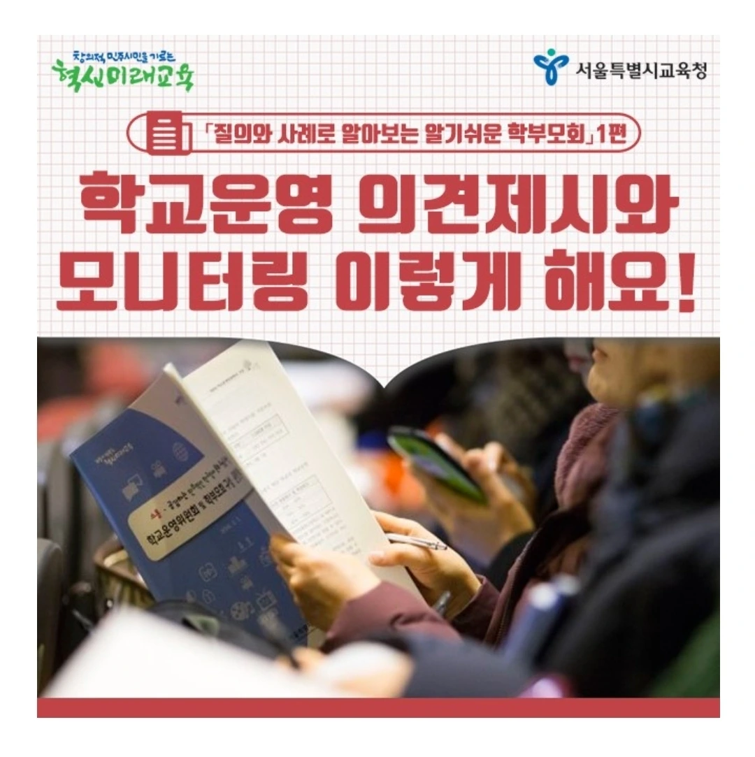 지금은 임기가 끝난 4년 동안 학교 운영위원회 위원을 해왔던 것도 다사다난함의 연속이었는데 학부모회까지 나서서 하기엔 솔직히 부담스럽기도 했습니다. 감투를 못써서 안달 난 사람처럼 보이는 것도 원치 않았죠.