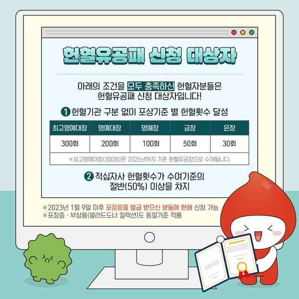 그러다 보니 대한적십자사에서는 400회 헌혈자를 위한 '헌혈챔피언'이라는 우대 기준까지 만들었다고 합니다. 이 정도면 중독이라고 해도 될 수준인데 모순적인 표현이지만 정말 아름다운 중독입니다.