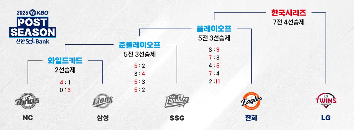 어제 날짜로 드디어 한국시리즈에서 LG 트윈스와 격돌할 팀이 결정되었기 때문이죠. 5전 3선승제의 플레이오프에서 한화 이글스가 NC와 SSG를 차례로 꺾고 올라온 삼성 라이온즈를 5차전까지 가는 접전 끝에 물리쳤습니다.