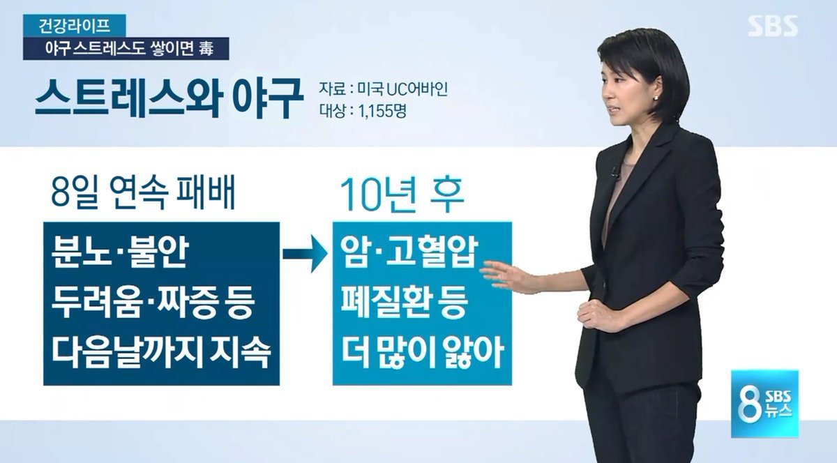 저만 그런 건 아니었는지 미국에서는 '스트레스와 야구'의 상관관계를 조사한 연구결과까지 있었습니다.