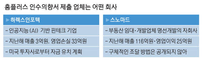 결국 시간은 흘러 10월 31일, 새로운 주인을 찾기 위한 홈플러스 인수의향서 접수가 마감되었습니다. 그러나 의향서를 제출한 업체는 고작 2곳에 불과했습니다. AI 전문 핀테크 기업인 하렉스인포텍과 부동산 개발기업 스노마드가 그 주인공입니다.