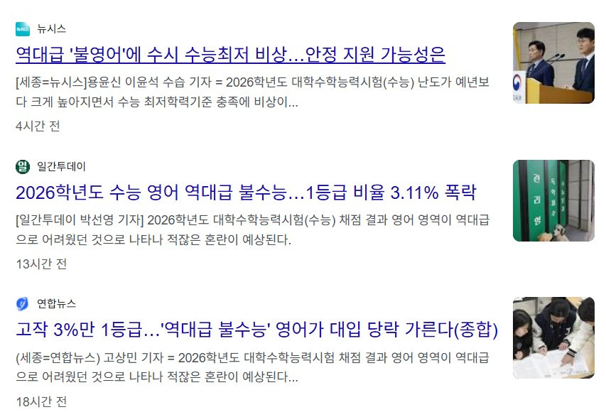오늘은 2026학년도 대학수학능력시험 성적표가 나오는 날입니다. 아마 수험생들은 물론 부모님, 지인들까지도 아침부터 마음을 졸이는 날이지 않았을까 싶습니다. 저도 시험을 치른 지인이 제법 있기에 그런 기분이 들었죠. 물론 시험을 치른 날에 바로 가채점을 할 수 있기에 점수와 등급 분포에 대해서 충분히 짐작 가능하지만 공식적인 문서를 받았을 때 그 무게감은 다를 수밖에 없으니까요.