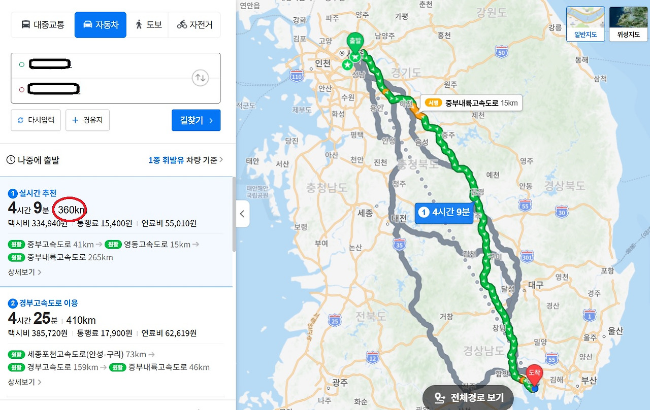 보통 한 번 이렇게 양가 어른들을 방문하고 오는 경로의 이동거리는 합산해서 800km에 달합니다. 그러다 보니 어느 구간이라도 폭설로 인해 도로에 문제가 생기게 될 경우 오도 가도 못하는 난감한 상황에 처하게 될 수도 있으니까요.