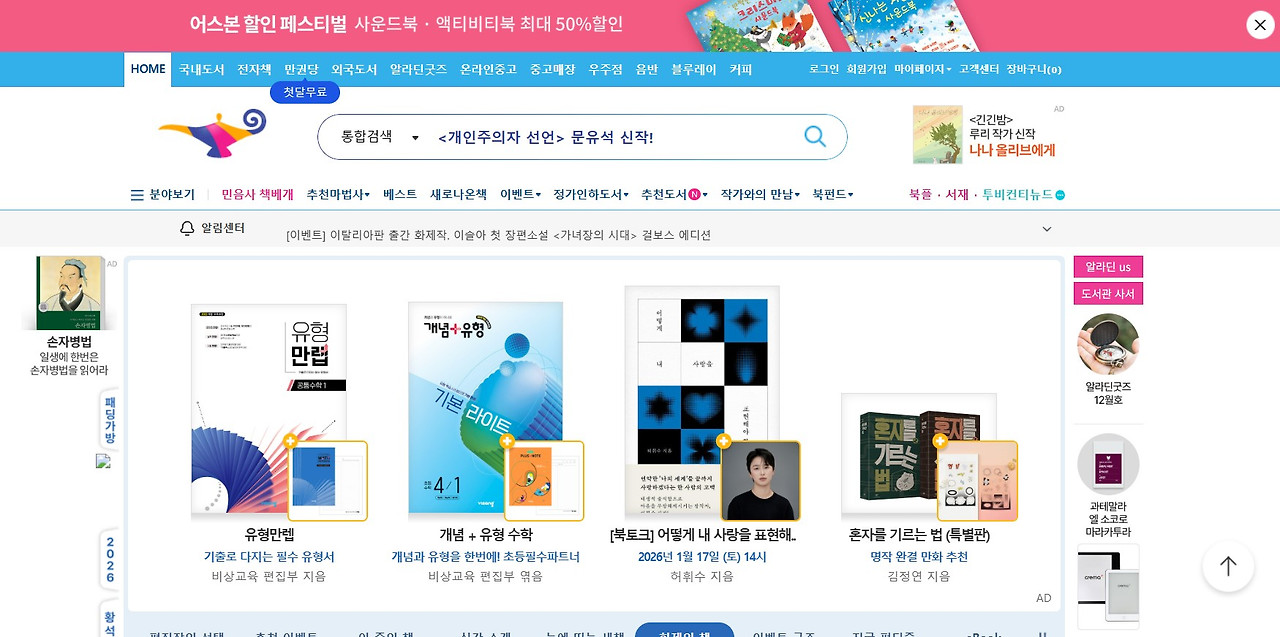일단 인터넷 서점 세 군데를 돌아봤습니다. 올해 도서시장은 어떠했는지 결산을 해놨을 테니까요.