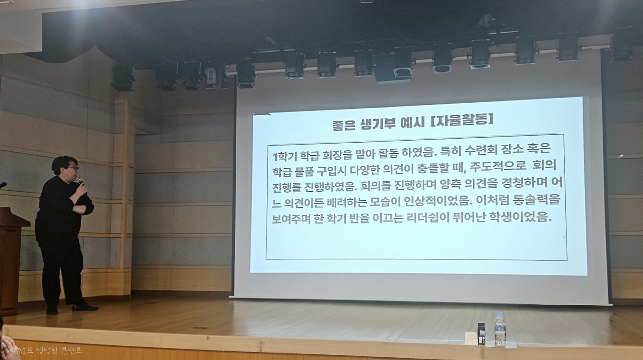 강연에서는 고등학교 입학 예정인 학부모님들을 대상으로 생기부는 어떻게 구성되어 있고 어떤 식으로 관리를 해야 하는지에 대한 간략한 사항을 알려주셨습니다. 과목별로 선생님들이 나오셔서 공부방법과 겨울방학 때 풀어두면 좋은 문제집들을 추천해 주셨습니다. 꽤 유익했습니다.