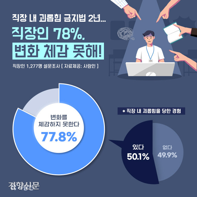 그런데 만약에 그때도 지금처럼 직장 내 괴롭힘 신고제도가 있었다면 어땠을까 생각해봤는데 쉽게 답이 나오지 않았습니다. 피해자로 신고한 제가 되려 과한 반응을 보여 사내 분위기를 해치는 사람이 될 수도 있었을 겁니다. 그렇게 역으로 당할 수도 있었겠다는 생각이 드니 오싹하기도 합니다. 아마도 그래서 저는 그 지인의 결정에 대해 아무런 반론도 해줄 수 없었죠.