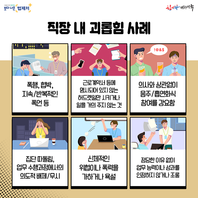 저와 친했던 지인 중 한 분이 이번에 인사이동을 하게 되었다는 연락을 해왔습니다. 원래는 인사이동을 할 시기도 아니었고 특별한 사유도 없었던지라 의아했죠. 자세한 이야기를 들어보니 같이 근무하는 분들과의 트러블이 심해서 고육지책으로 그와 같은 방법을 선택했다고 합니다. 직장 내 괴롭힘이었던 것이죠. 그분이 겪은 내용들을 언급할 수는 없지만 그동안 느꼈던 정신적인 고통이 상당했다는 사실은 충분히 알 수 있었습니다. 그이야기를 듣고 안타깝기도 하고 화도 많이 났습니다.