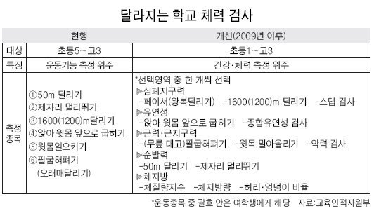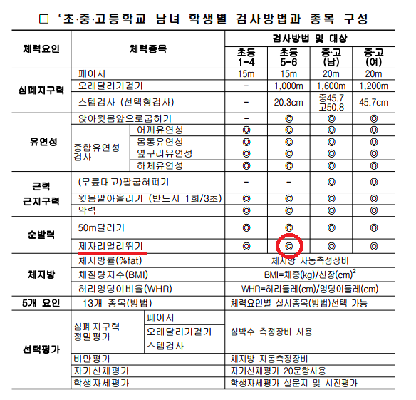 이렇게만 보면 저희(?)가 자라왔던 시절의 체력장과 비교했을 때 아마 상당히 헷갈리실 겁니다. 저도 꽤 어린 시절의 기억이다 보니 어떻게 했는지 가물가물합니다. 그래서 제가 또 신구 대조표를 준비했지요.