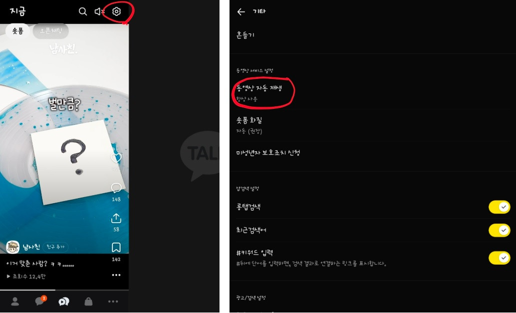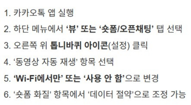 ※ 참고로 도움이 되실까 싶어 카카오톡 숏폼이 자동재생 되는 걸 막는 방법만 좀 알려드리겠습니다. 첨부된 그림을 참고해서 해보셔요. 조금은 나아지시지 않을까 싶습니다.