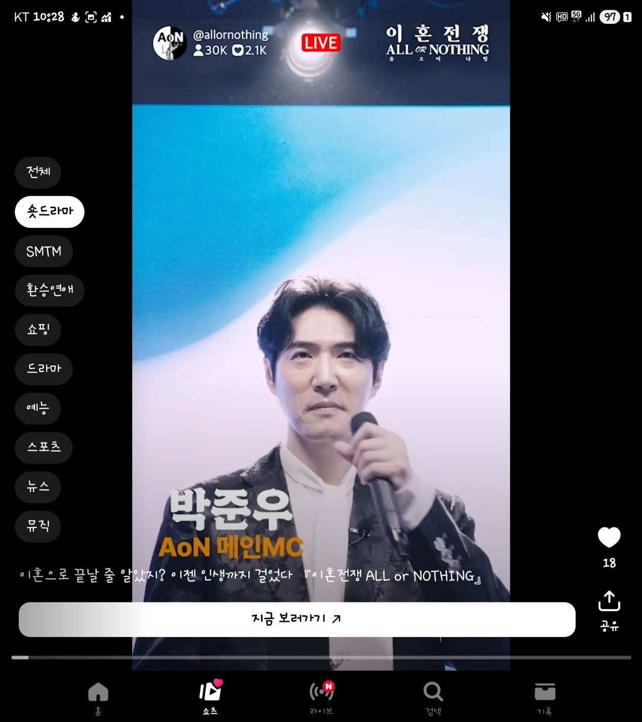 OTT 플랫폼인 티빙에서도 숏폼 콘텐츠를 운영하고 있습니다. '티빙 숏 오리지널'이라는 이름입니다. 차별화를 두겠답시고 숏드라마라는 새로운 장르를 만들어서 사용하고 있는데 보고 있으면 기분이 좋지 않습니다.