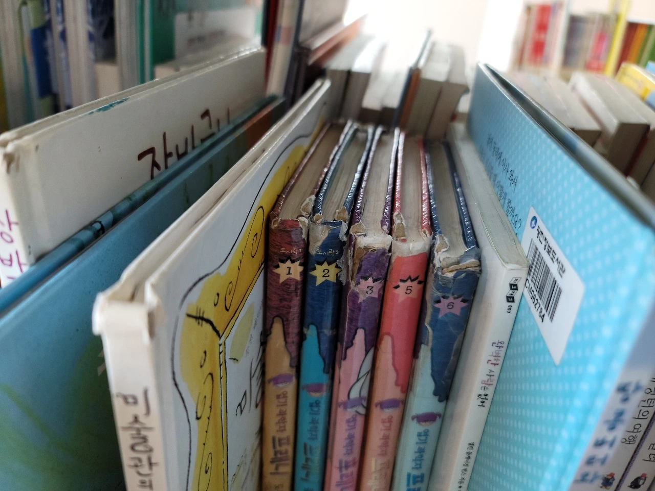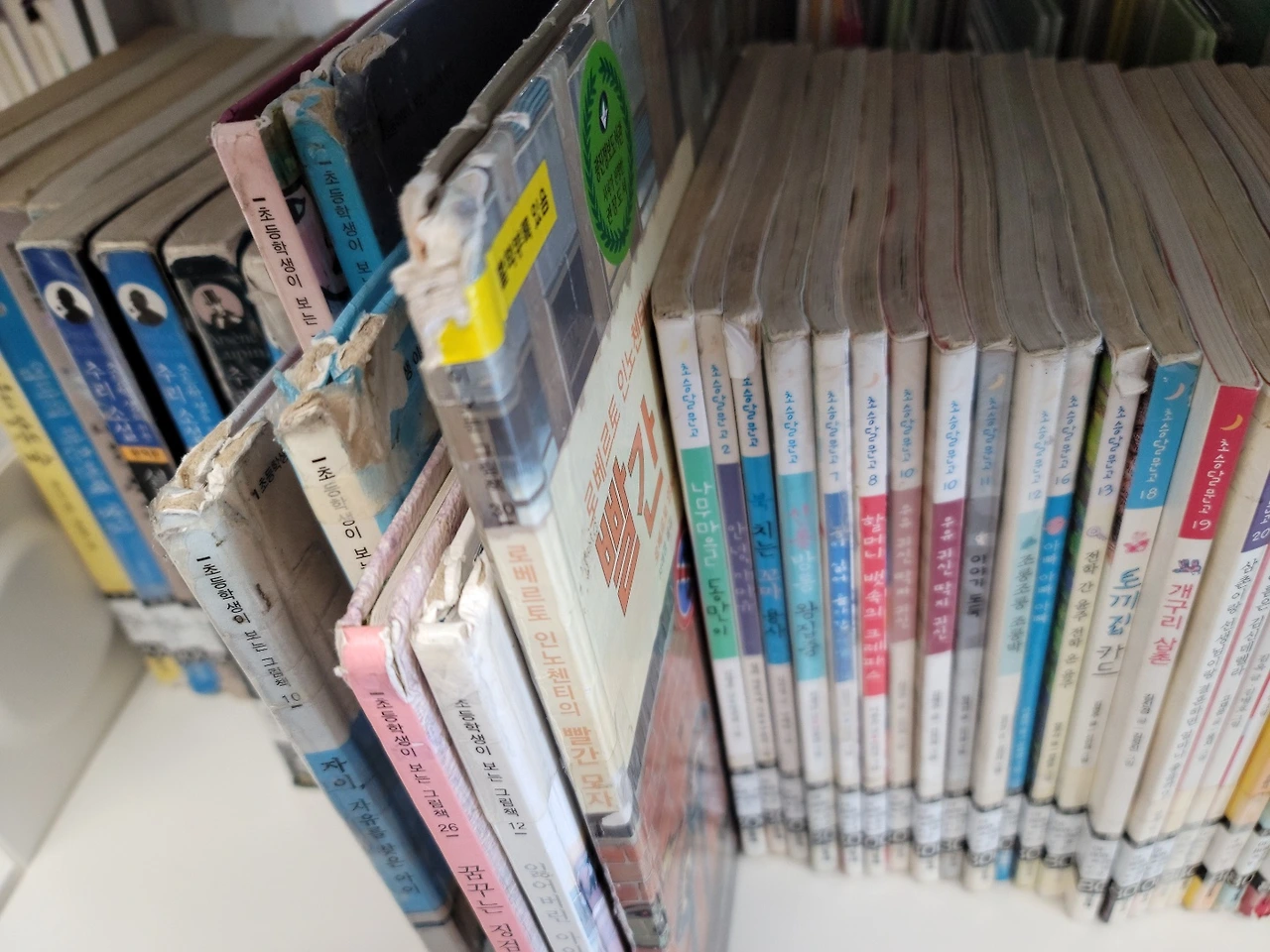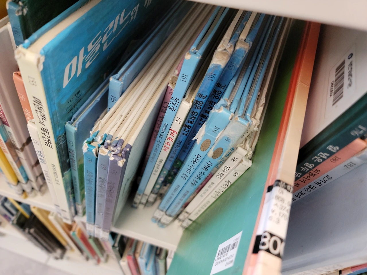 하지만 이 도서관에는 안타깝게도 치명적인 문제가 있습니다. 바로 도서들의 상태가 매우 불량하다는 점입니다. 아이들에게 조금이라도 자주 읽히거나 인기가 있는 책들의 상태가 상당히 좋지 않습니다.