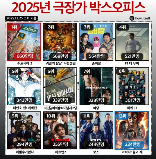 저 역시 되돌아보면 작년에 본 영화가 미션임파서블 파이널 레코닝 단 한 편 뿐이었으니까요. 천만 영화도 없었던 한 해여서 더욱 흉년이었죠.