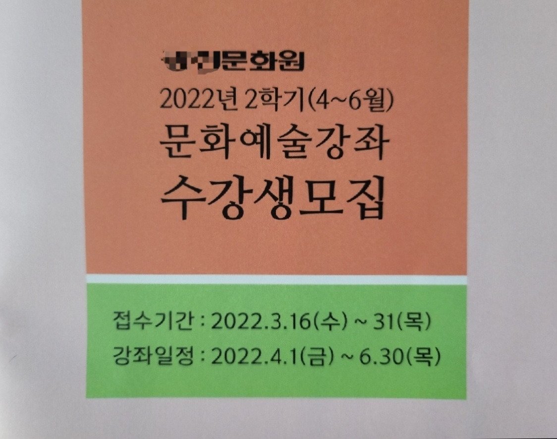 그렇게 세월아 네월아 하며 허송세월 한 것이 7~8년이 돼버린 것입니다. 그러던 차에 집 근처에 있는 문화원의 수강생 모집 팸플릿이 우편함에 꽂힌 것을 발견하게 되었습니다.