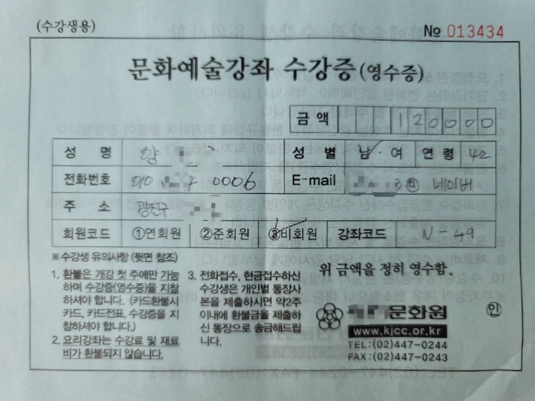 환불(?!)을 위해서 꼭 챙겨야 한다는 수강증입니다.