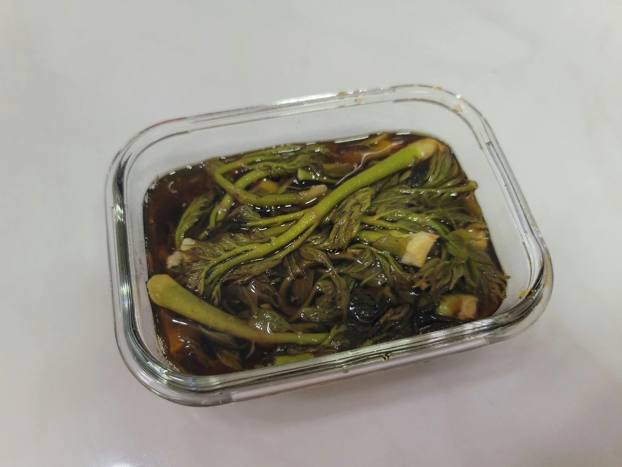 단짠단짠을 사랑하는 제 입맛에 꼭 맞는 이 두릅 장아찌는 말 그대로 기막힌 우연을 통해 저와 만나게 되었던 것이죠. 하지만 누구에게나 만남이 있다면 이별이 있는 법. 최근 그 누구보다도 제 소중한 친구였던 두릅 장아찌 통은 서서히 홀쭉해지기 시작했습니다.