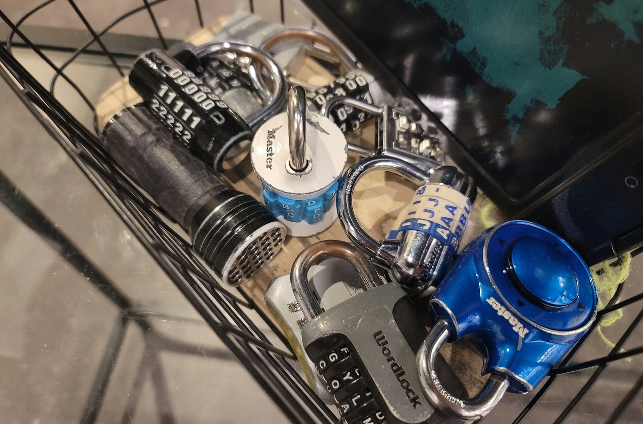 입장을 한 뒤 직원에게 설명을 듣습니다. 조금 뒤 수많은 종류의자물쇠를 보여주며 사용방법에 대해서 알려줍니다. 세상에 별 특이한 자물쇠들이 존재하네요.