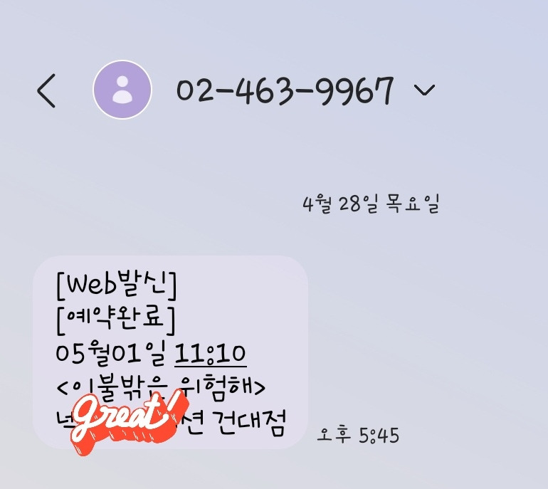 이어서 날짜와 시간대도 확인하고 예약까지 마쳤습니다. 제목은 <이불 밖은 위험해>인데 장르가 드라마지만 왠지 이것도 무서울 것 같아 살짝 걱정입니다.