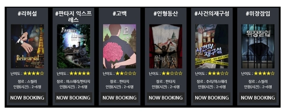 서너 군데의 사이트를 방문했는데 어떤 것을 할 것인지 선택하는 것이 생각보다 어렵지는 않았습니다. 방탈출 카페라는 콘텐츠의 특징이 추리를 기반으로 하고 있다 보니 '사건'과 연관될 수밖에 없기 때문입니다.