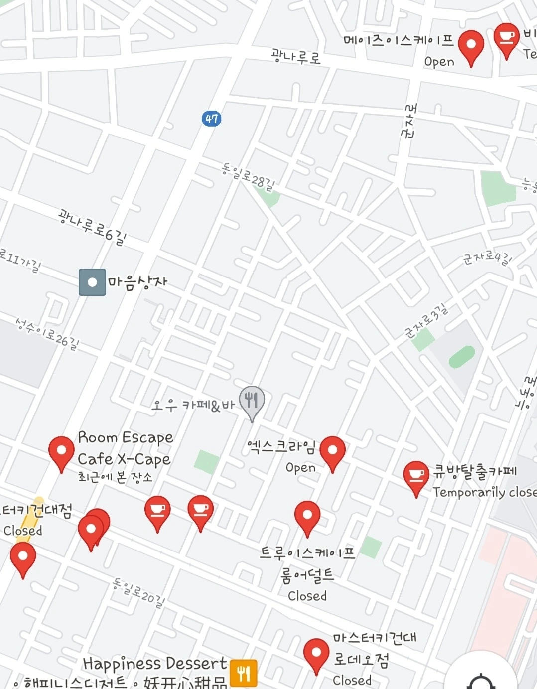 다행히 집에서 가까운 건대 근처에 방탈출 카페들이 상당히 많이 포진되어 있습니다. 아이들에게 인터넷으로 검색을 해보고 직접 고르게 해 보았습니다.