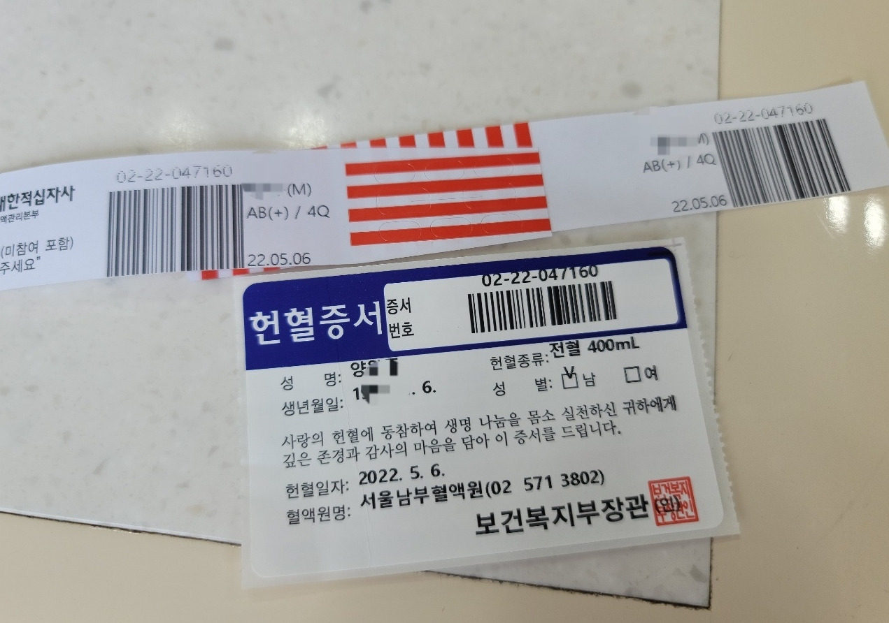 그 뒤로 몇 번의 헌혈을 했고 입사 초기에 그동안 모았던 헌혈증을 기부하는 것으로 보람을 느낀 적도 있었습니다.