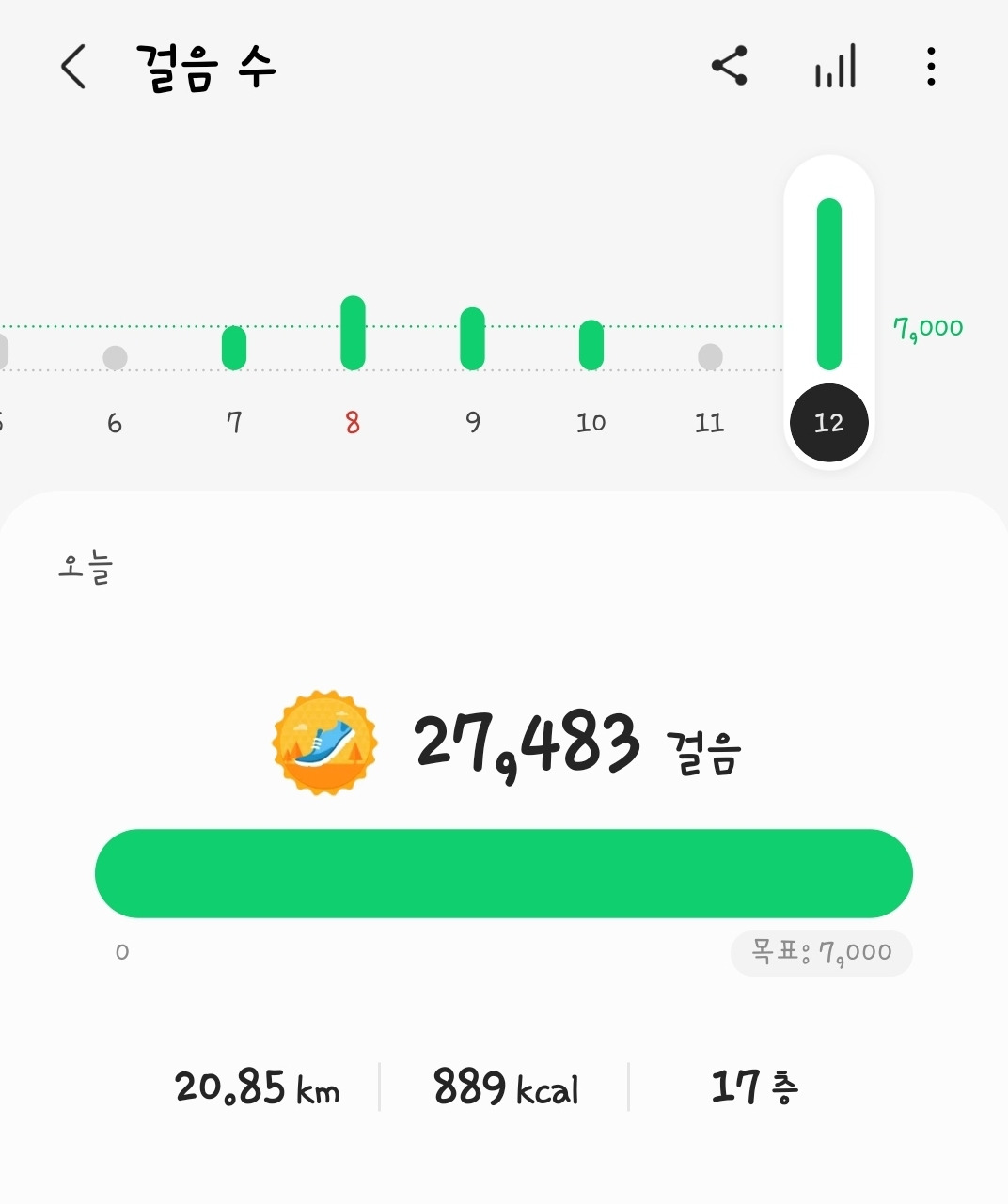 집에 도착한 2호에게 채워두었던 제 워치를 통해 오늘 달성한 걸음수를 확인해보니 놀랄 지경입니다. 아침에 정상적으로 일어난 것이 다행입니다.