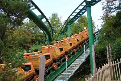 그다음에는 어린이용 롤러코스터를 여섯 명 모두 타기로 했습니다. 바로 거꾸로 가는 기차, '레이싱 코스터'라는 놀이기구였습니다.