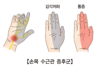 손목터널 증후군은 수근관(손목뼈 사이 9개의 힘줄과 하나의 신경이 지나는 길) 증후군이 정식 명칭입니다. 손목의 무리한 반복적 사용이 가장 큰 원인입니다. 그리하여 인대가 주요 신경을 압박해 손바닥이나 손가락에 이상 증상을 유발하는 것이죠.