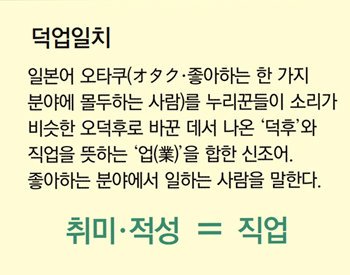 요즘 최고 행복한 사람은 덕업일치(취미와 직업의 일치)라는데 저는 현실적으로 쉽지 않다고 생각합니다. 하지만 아직 많은 사람들은 덕업일치를 이상적인 인생으로 생각합니다.