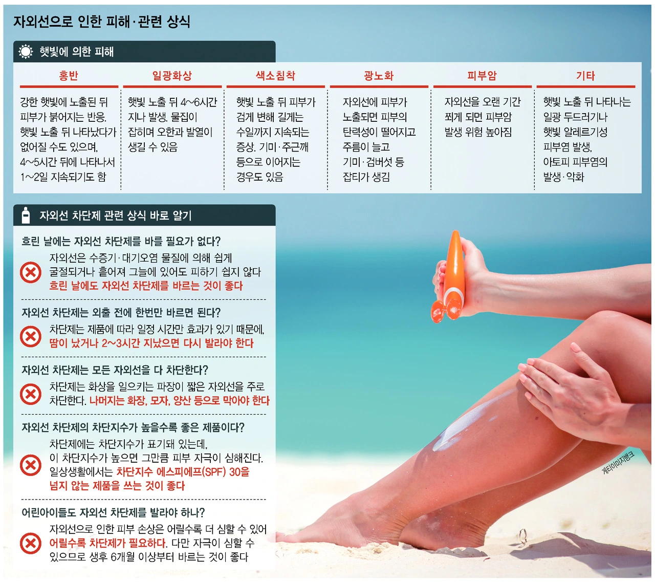 뜨거운 햇볕은 자연뿐만 아니라 인간의 신체에도 많은 영향을 미칩니다. 자연적으로 비타민 D를 만들어주는 긍정적인 효과도 물론 있습니다. 하지만 햇볕에 오래 노출되었을 때는 체온을 높여서 건강상의 큰 문제를 일으킬 수 있을뿐더러 자외선으로 인해 피부의 손상도 일으킵니다.