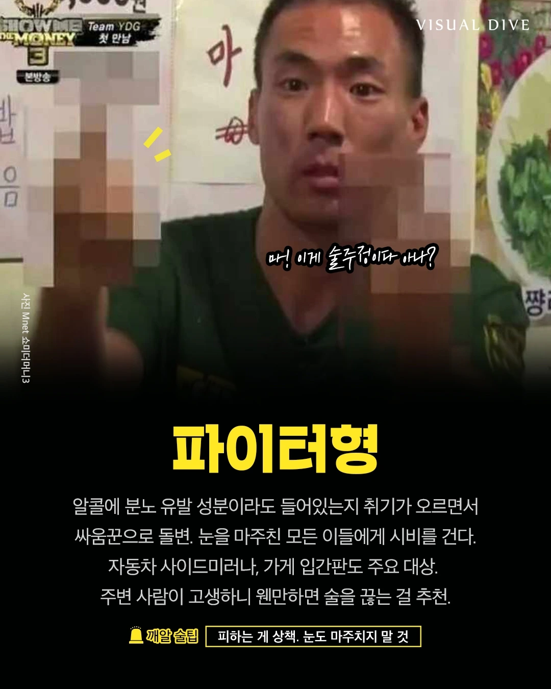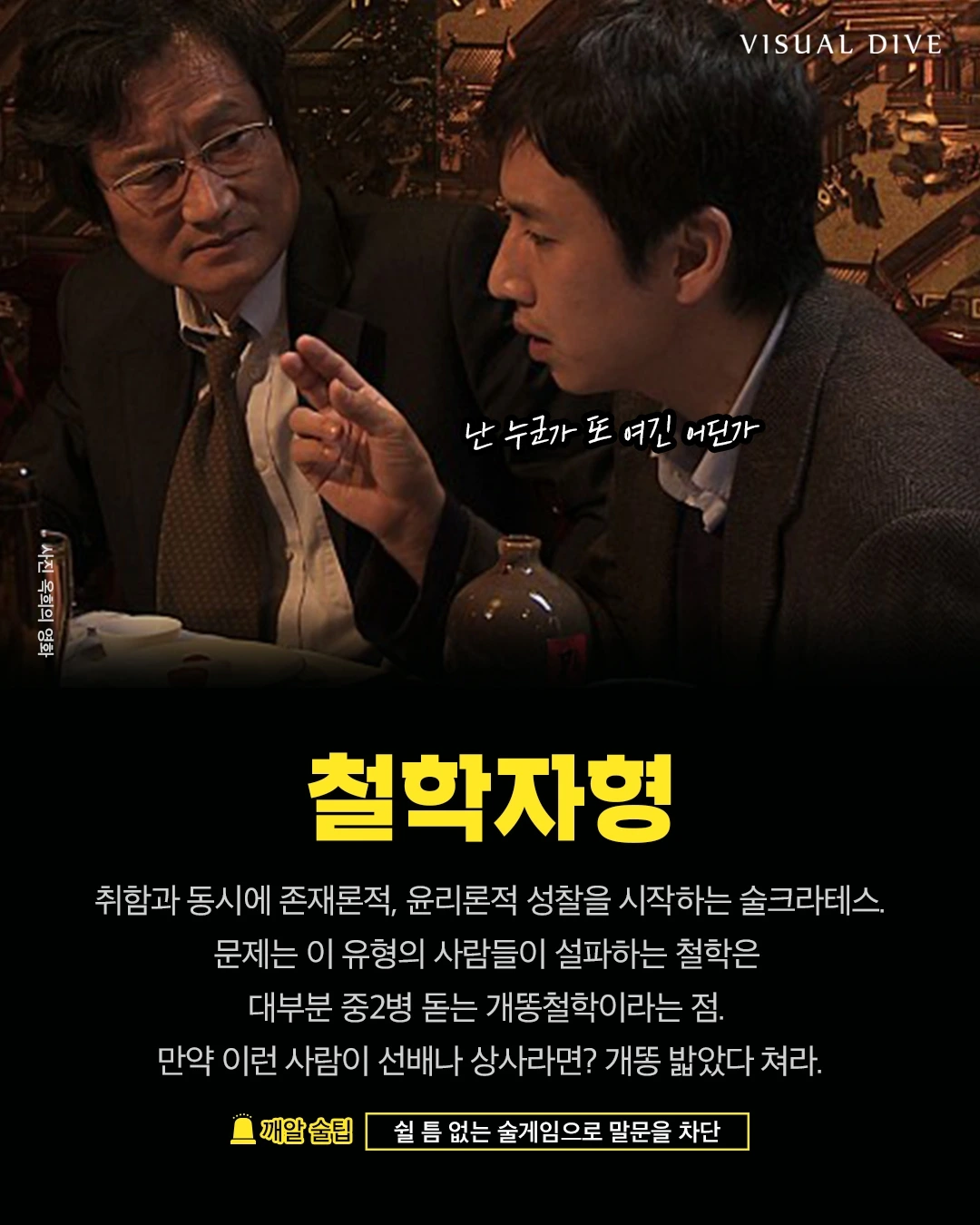 하지만 사회생활을 하면서 술에 취하면 카멜레온처럼 변신해 상상도 못 한 모습을 보여주는 다양한 부류의 사람들을 만나면서 술을 마시는 방법(주도)에 대해서 배우는 것이 중요하다는 것을 새삼스레 생각해보게 됩니다.