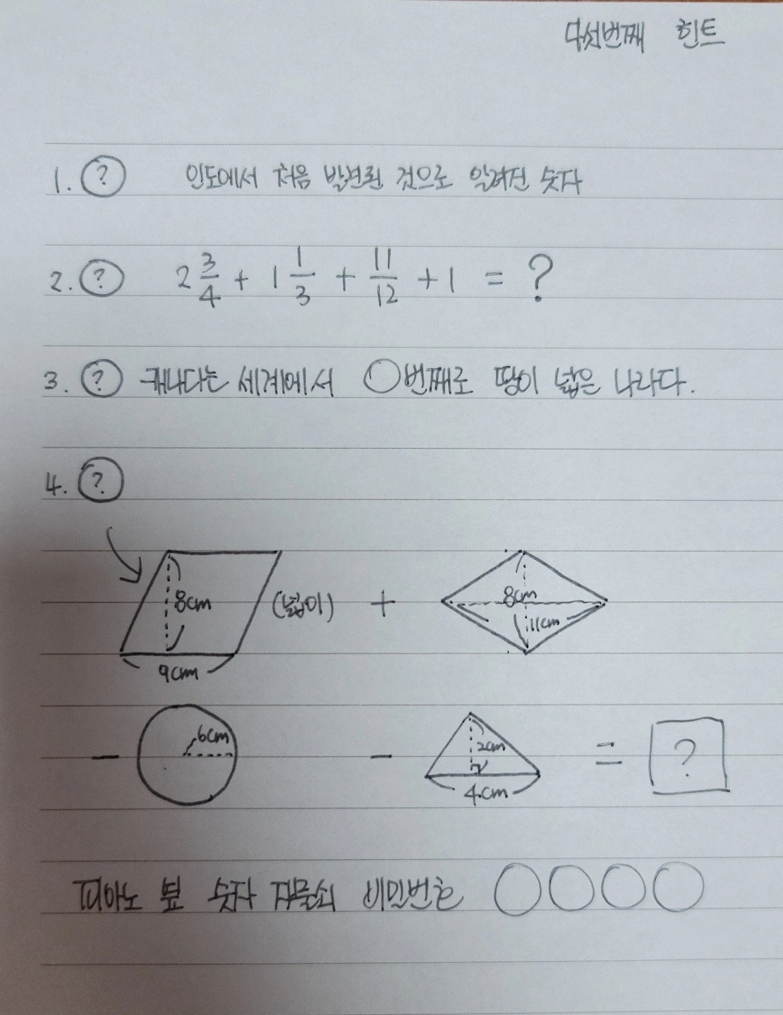 마침내 피아노에 묶여있는 자물쇠 번호 네 자리를 획득