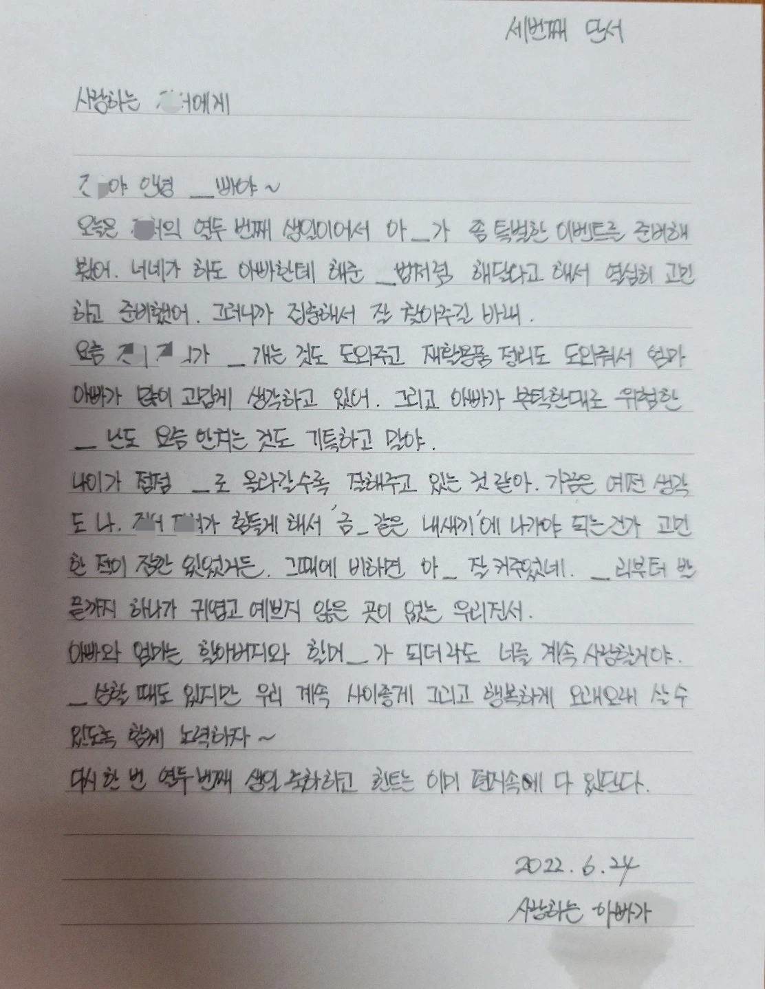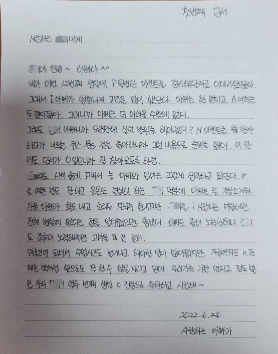 "아빠, 이번 생일에는 저희한테도 이벤트 해주세요."