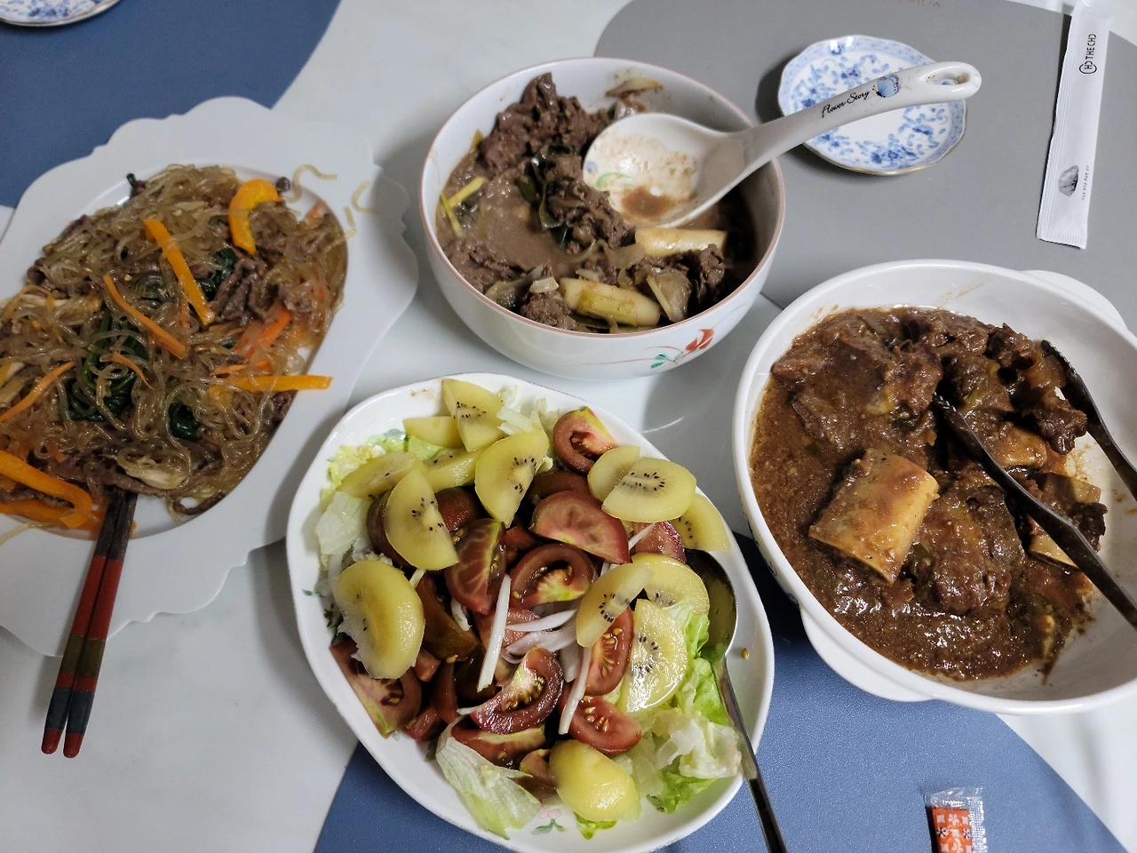 손님들과 함께 일단 맛있게 다들 먹긴 했습니다. 하지만 다음번에는 절대 이렇게까지 음식을 만들지 않겠다고 하는 걸로 봐서는 아내도 어지간히 힘들었던 모양입니다.