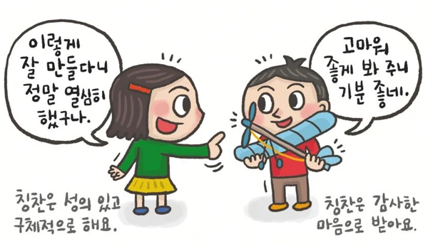 그런데 이런 일이 생겼으니 제 입장에서는 아쉬운 마음이 많이 들었죠. 칭찬을 해줬다는 이야기도 아닌 칭찬을 들었는데 제대로 답을 못했다니 말입니다. 결국 저는 잔소리를 할 수밖에 없었고 다음 날 그 친구에게 사과를 하고 고맙다는 인사를 하기로 다짐을 받았습니다.