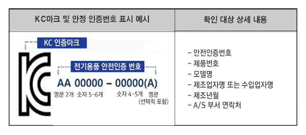 이런 제품들이 버젓이 시중에 유통되는 것이 제일 큰 문제지만 나라에만 맡겨놓을 수도 없는 노릇입니다. 우리 스스로 이런 상황이 생기는 것을 예방하기 위한 간단한 방법이 있습니다. 선택한 제품에 뒷면에 안전 인증을 받은 제품이라는 표시인 ‘KC(Korea Certification Mark)’ 마크가 있는지 확인을 하면 됩니다.