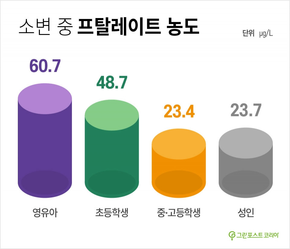 프탈레이트는 주로 플라스틱의 내구성을 높이거나 다른 물질을 용해하는 데 사용되는 화학물질입니다. 현재는 아이들 장난감에 기준치 이상의 프탈레이트 사용을 금지하고 있습니다. 지금까지 확실하게 밝혀진 프탈레이트의 부작용만 해도 내분비교란, 생식기능 저하, 정자의 DNA 손상등등.. 듣기만 해도 무서운 내용입니다.