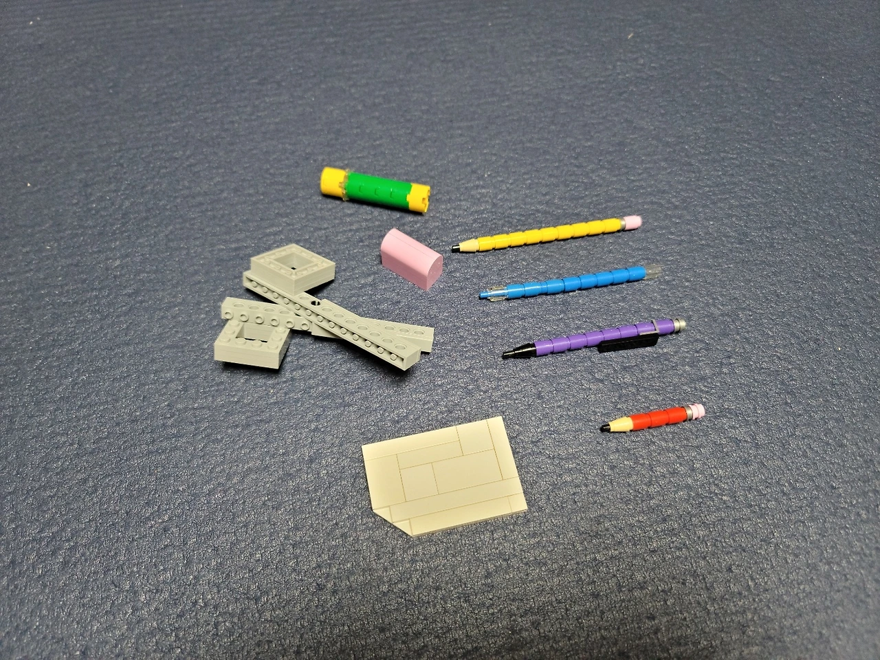1호가 프탈레이트가 없는 문구세트를 만들었습니다. 무지개색 레고 가방은 생일파티 때도 사용했는데 여러모로 쓸모가 많네요. 실제로 공부할 때 쓸 수는 없지만 모양은 그럴듯하네요.