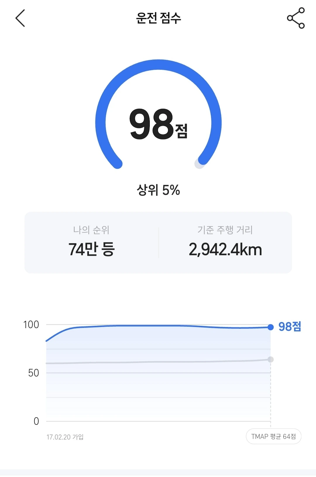 T map 안전운전 점수(제 거 아닙니다)
