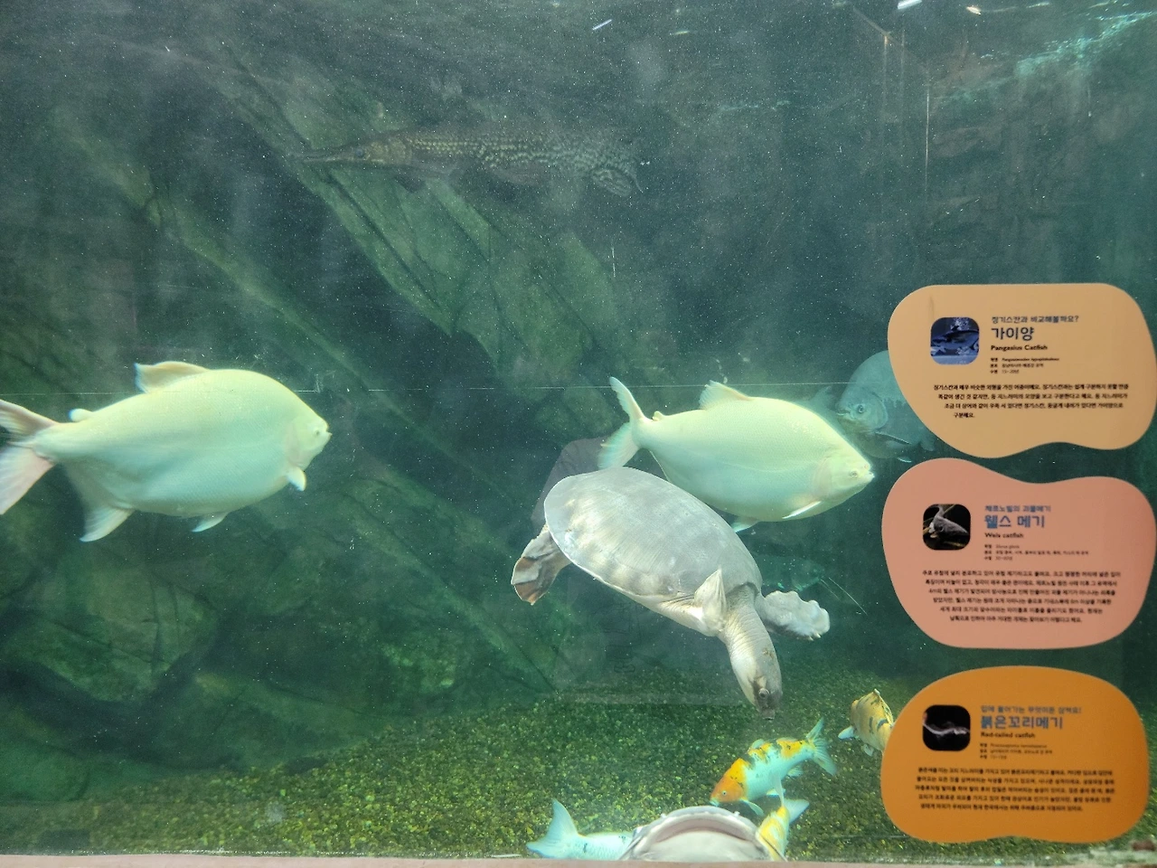 입장을 하고 로비에서 판매 중인 먹이를 삽니다. 물고기용 먹이, 앵무새용 먹이, 핀치(제일 작은 새)용 먹이, 포유류용 먹이까지 총 네 가지입니다. 4개를 한꺼번에 사면 할인을 해서 4천 원에 판다고 하는데 약국에서 받는 약봉투 정도의 사이즈에 들어가 있는 양을 보면 터무니없는 바가지처럼 같지만 어쩔 수 없습니다.