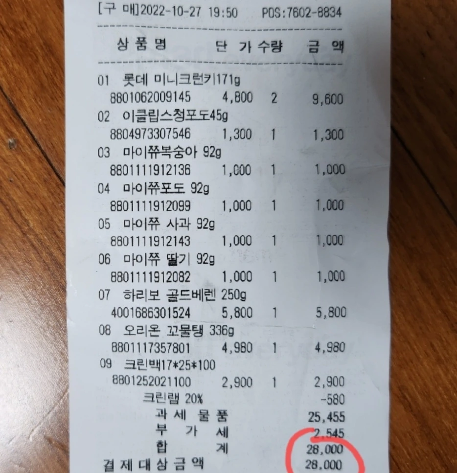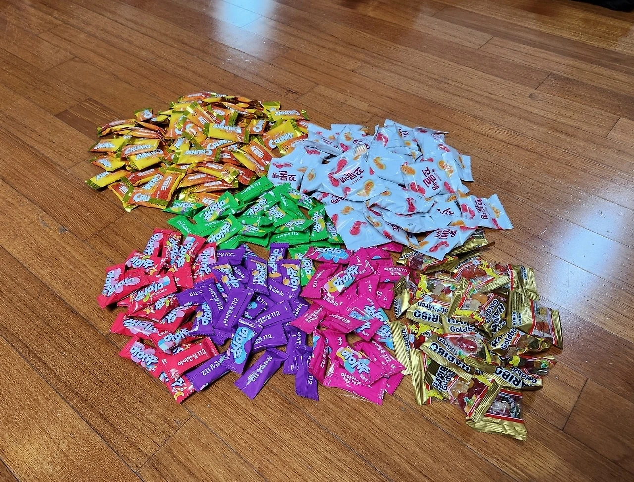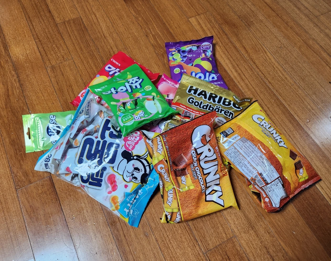 막상 집으로 돌아와서 사 온 것들을 펼쳐보니 한숨이 나옵니다. 영수증으로 확인되는 금액은 둘째 치더라도 이 설탕 덩어리들을 친구들에게 나눠줄 생각을 하니 이것이 과연 잘하는 짓인가 싶습니다. 이걸 다 먹고 나면 아이들의 치아건강에 해가 될 것이 뻔하기 때문입니다.