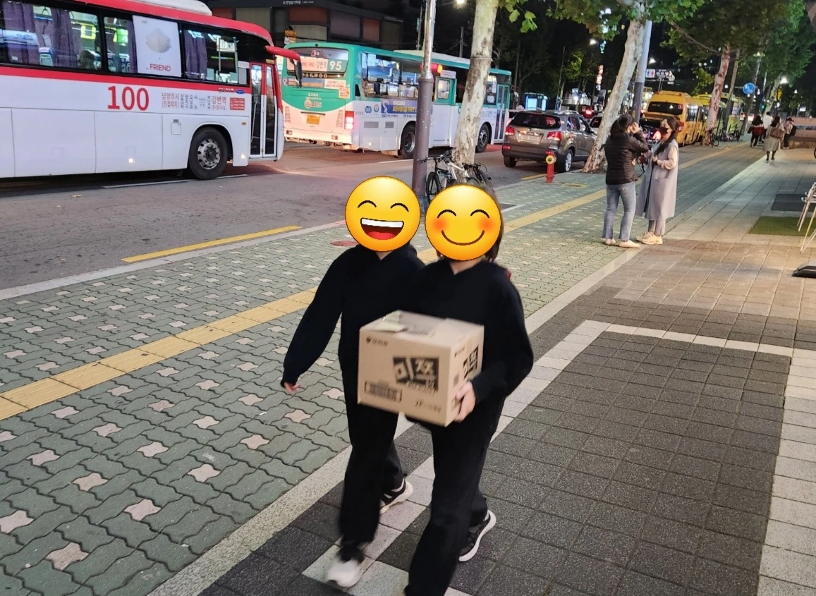 여러 가지의 과자들을 고른 뒤 조그만 박스에 담아서 가게를 나섭니다. 아이들이 손수 골라 바리바리 산 과자들을 들고 돌아오는 발걸음이 즐거워 보입니다. 제가 평소에 젤리나 사탕류는 굉장히 엄격하게 먹는 것을 관리해왔는데 오랜만에 마음껏 허락하에 플렉스를 한 것 같아서 그런 모양입니다. 대신 경제교육을 확실히 시키고픈 저는 아이들의 용돈으로 이 비용을 사용하겠노라고 분명히 말을 해둡니다.
